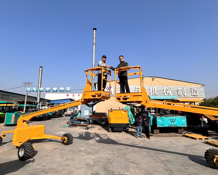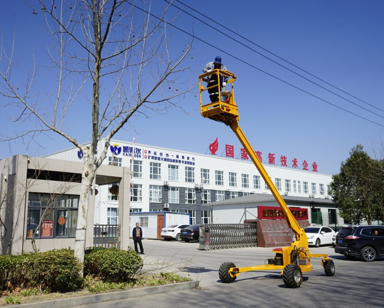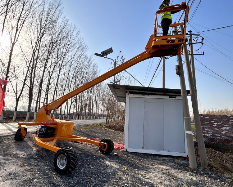 The mobile lifting platform's boom is longer, enabling the operator to achieve a higher lifting height and a wider range for tree work.